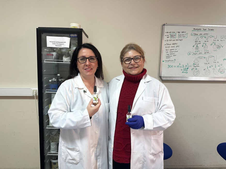 Bölüm Başkanımız Prof. Dr. Nükhet Zorba ve Ezine MYO Öğretim Üyesi Dr. Öğr. Üyesi Dilvin İpek tarafından alınan patente konu olan ürünün, yapılan deneylerde gıda sektöründe risk oluşturan bakterilere ve Hepatit A gibi bazı virüslere karşı etkili olduğu belirlendi. Geliştirilen yerli dezenfektanın gıda üretim alanları, sağlık ortamları ve ev kullanımı başta olmak üzere farklı alanlarda yaygınlaştırılması hedefleniyor.